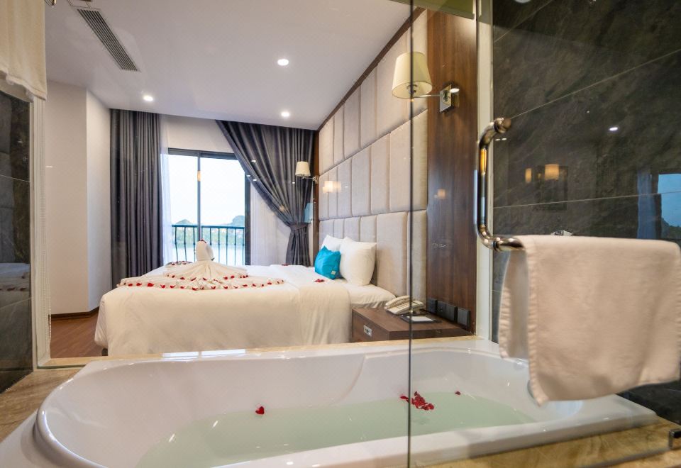 새롭고 현대적인 시설을 선호하거나, 하롱베이의 드라마틱한 경관을 눈에 담고 싶다면 다른 두 호텔을 고려해 볼 수 있습니다. 2025년에 문을 연 그린 드래곤 부티크는 넓고 깨끗한 객실과 신선한 시설이 강점입니다. 특히 일부 객실에서는 바다 전망 또는 아름다운 석회석 호수 전망을 제공합니다. 꽝닌 박물관에서 23km 거리에 위치하며, 야외 수영장을 갖추고 있어 쾌적한 휴가를 보낼 수 있습니다.